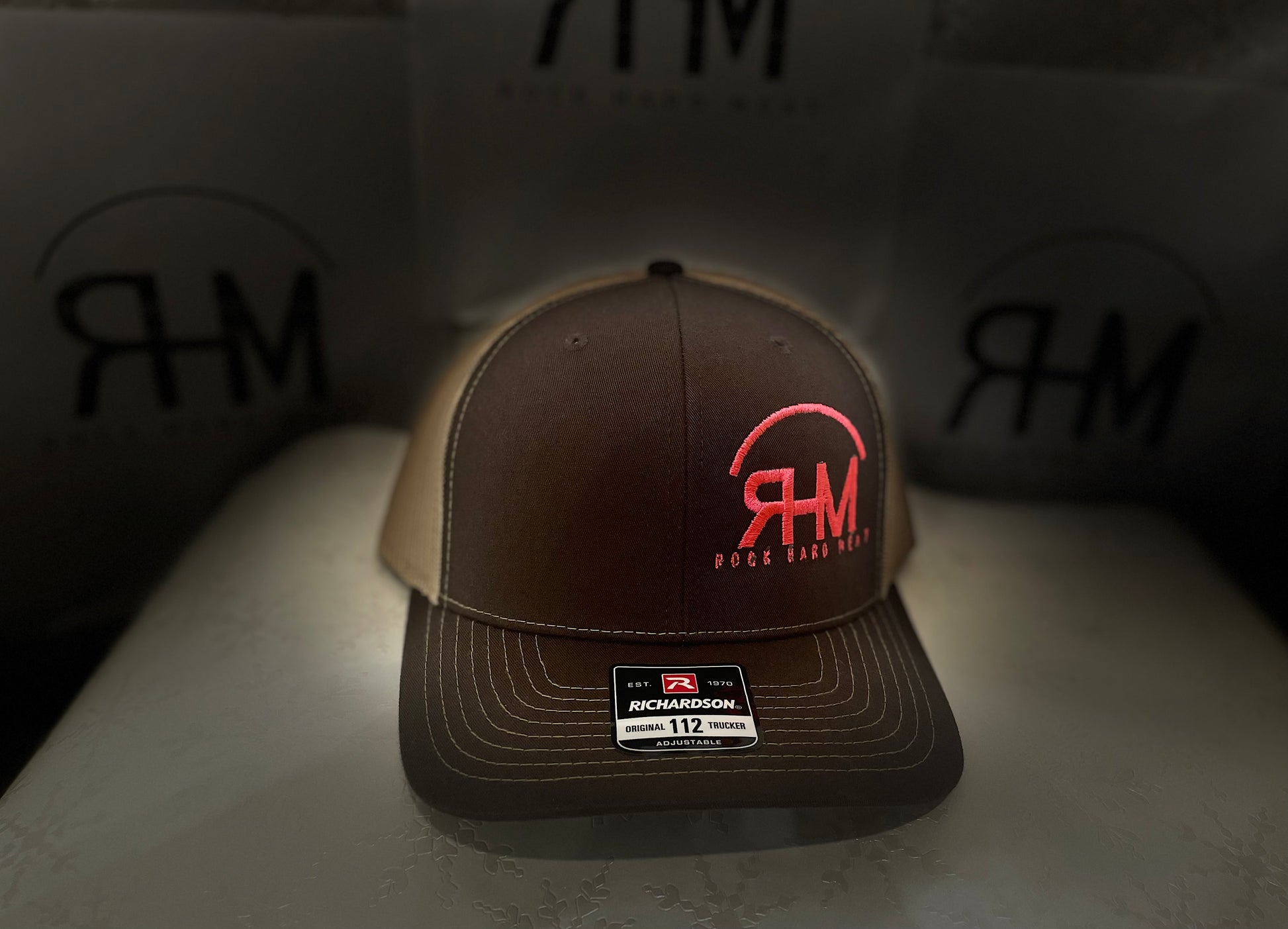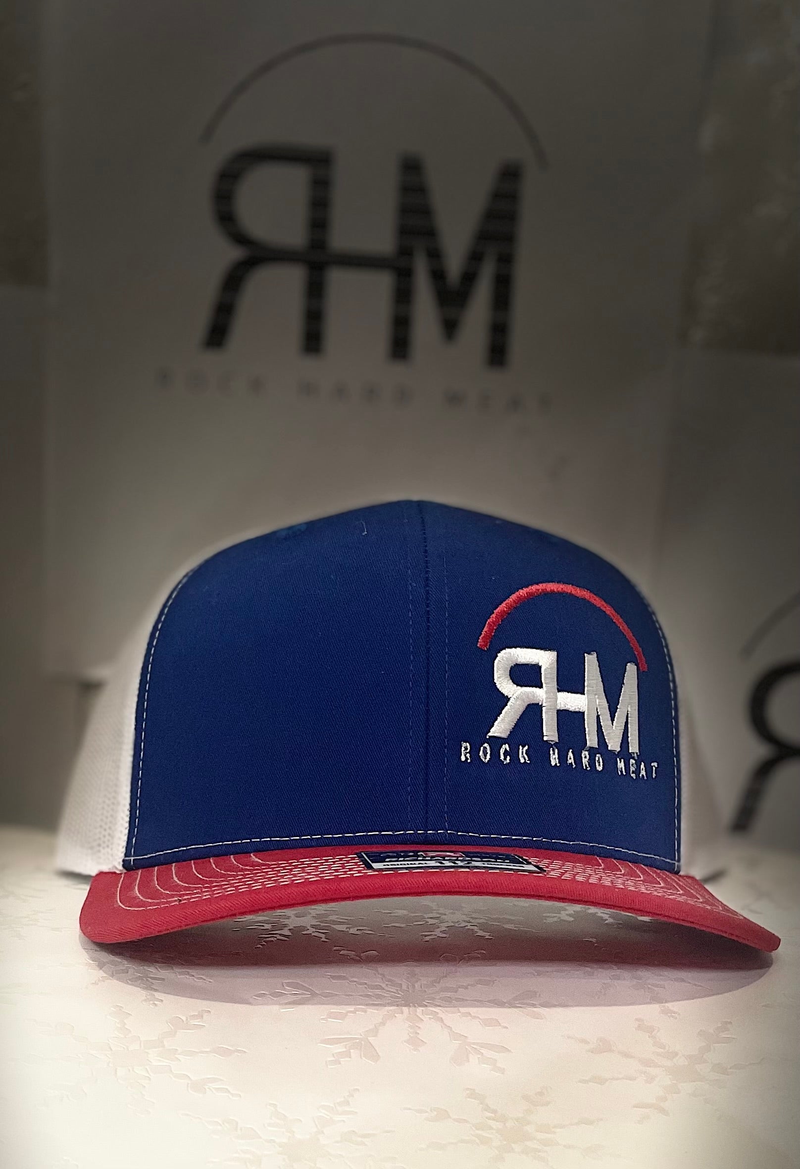 Rock Hard Meat Co Hats With Brand Center or Side, Snap Back Mesh with Lettering on Back, Richardson 112